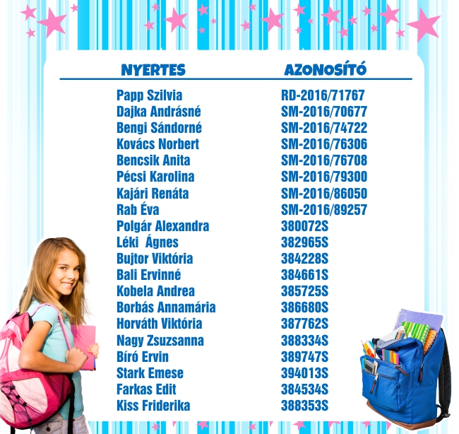 Ismét egy izgalmakkal teli iskolakezdésen vagyunk túl, mely egyben a "Nyerd vissza a beiskolázás költségeit" nyereményjátékunk lezárását is jelenti. Köszönjük nektek, hogy idén is ilyen hatalmas számban jelentkeztetek a játékba és természetesen köszönjük, hogy megtiszteltetek bennünket bizalmatokkal és nálunk vásároltátok meg a gyerkőcök iskolafelszerelését.